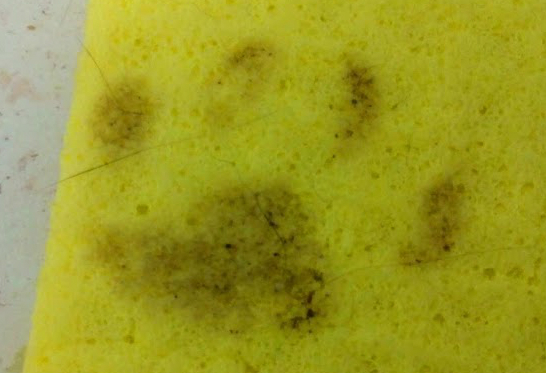 Huella real sobre bayeta real de la cocina