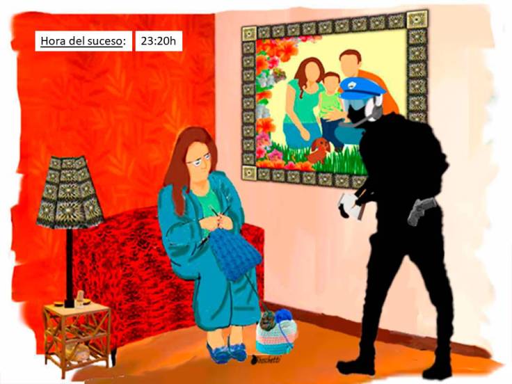 “Puse pausa a la serie, que está muy bien… Mike hablaba con su nuera y… sí, sí, ¡ese que anda con el abogado y también con el del sombrero… a ver si me acuerdo del nombre… ¡Mike Ehrmantraut!… sí, sí me centro, perdón. Son los nervios. Bueno, me dio sed y puse pausa a pesar de lo bueno que estaba el capítulo, si ya…el punto a tratar… fui a la cocina y encendí la luz. Entonces vi algo negro saltar desde la encimera…sí, sí muy rápido. Grité y fue que ustedes llegaron…no, no vi más nada… ¡oh no!! ¡No, yo no toqué la bayeta!… no, no esa huella no es mía… sí claro, le dejo la muestra de mi mano en una servilleta sin problema… Por su puesto que hay un gato negro en mi familia… Un momento por favor ya se lo busco, que tiene mal despertar. ¿Pongo su huella en la misma servilleta que la mía o en una servilleta aparte?”