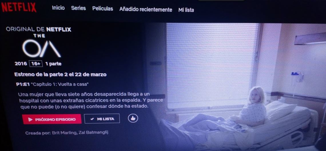 *La información sobre las temporadas esta actualizada, en el momento de escribir este Apropósito The OA solo estaba la primera parte en Netflix. Actualmente están disponibles las dos partes en la plataforma.
