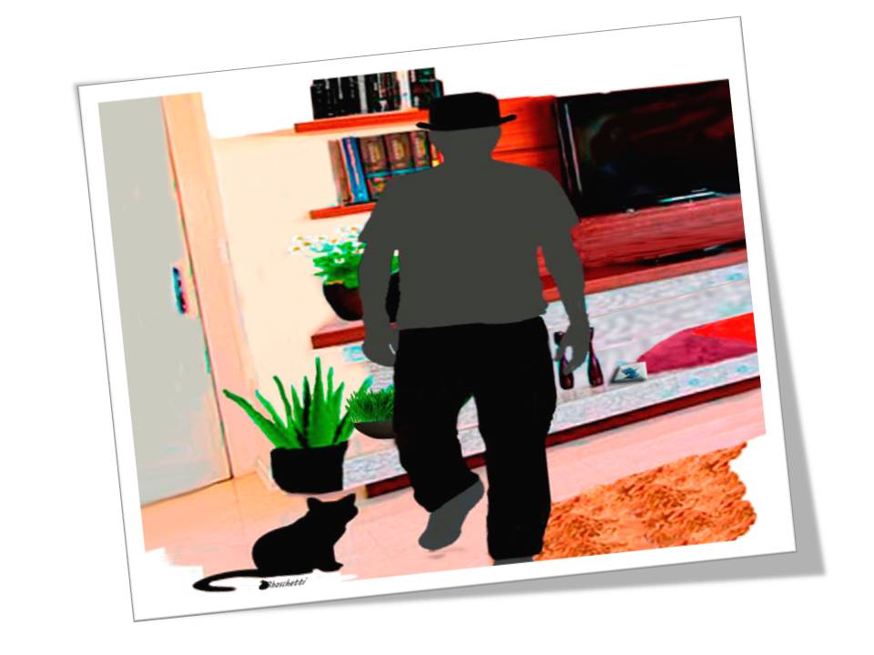 Continúa el camino lo más rápido que puede, las bolsas están pesadas. Al entrar deja todo en la cocina, se sienta en el sofá para descansar un poco. Saluda a Bram quien se instala a su lado y le habla con el idioma del corazón. Saturnino Segundo, después de un largo rato de intensos ronroneos, comprende que esas reuniones son un suplicio para él. Hacen un pacto para que, a partir de este momento, esas visitas no lo molesten. Bram se siente satisfecho. Logró que Aarrnino haga balance sobre su fiel y larga relación, no sin tener que dar uno que otro golpe de garra para obligarlo a prestar más atención. Agradece que sus pertenencias las guarde en la habitación, que la puerta esté abierta, lo justo para que él pueda entrar y salir con facilidad. Da así un claro mensaje de «no entrar» a los humanos.