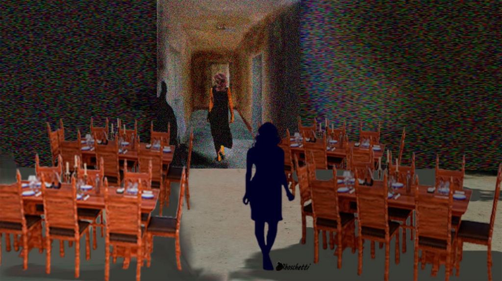 En un intento por esconderse, Lucía se refugió en la misma mesa de su madre. «Esto no puede estar pasando» le dijo. Antes de que pudiera terminar de hablar esa tía la toma de la mano y la sienta en otra silla y luego en otra y en otra… hasta que la paseó por todas las mesas en donde la obligó a sonreír con cada invitado. «Cálmate son conocidos nuestros, no hay porque temerles» le murmuraba la tía cerca de sus oídos, ante las protesta silenciosa y muy física de Lucía, por intentar zafarse de la mano que la apretó con fuerza para llevarla de silla en silla y de mesa en mesa hasta que la devolvió con su madre.