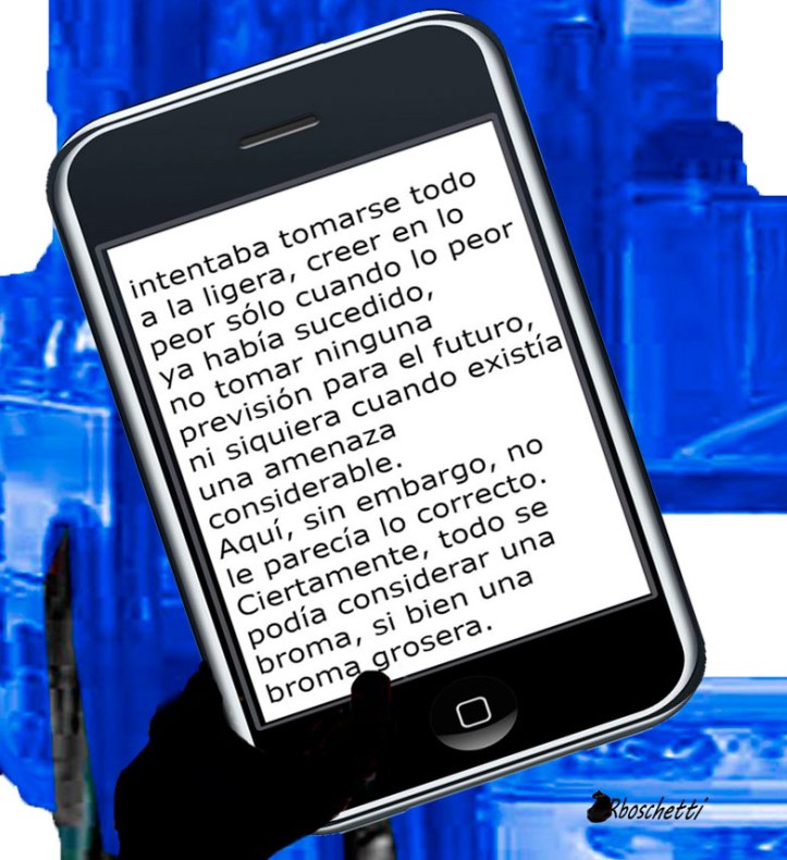 Saturnino Segundo sonrió ante el comentario, no pronunció ninguna frase graciosa ni sacó a colación ningún chiste para amenizar el viaje. Para distraerse un poco Saturnino Segundo sacó su móvil y su app de lectura.
