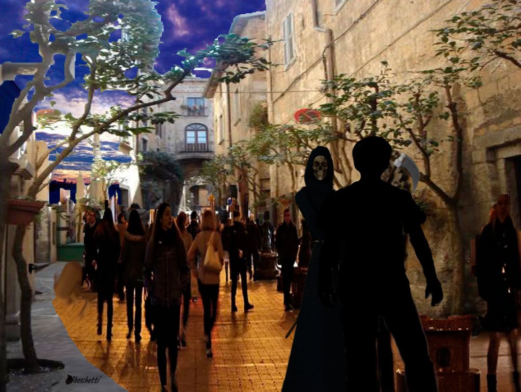 Ya era noche cerrada cuando decidió volver a su triste morada. Fueron muchos los que pasaron a su lado sin mirarlo y como una sombra llegó hasta su puerta. Allí, un grupo de personas le impiden entrar al edificio. Temeroso se abre paso, pero esas personas parecen no verlo, no notan su presencia. Policías, médicos y una camilla con una sábana que cubre lo que parece un cuerpo, le impiden entrar a su piso. Se pega a la pared para dejar paso. Un frío hasta ahora desconocido recorre su cuerpo y se apodera de él. En silencio y a una distancia prudente los sigue hasta llegar de nuevo a la calle.