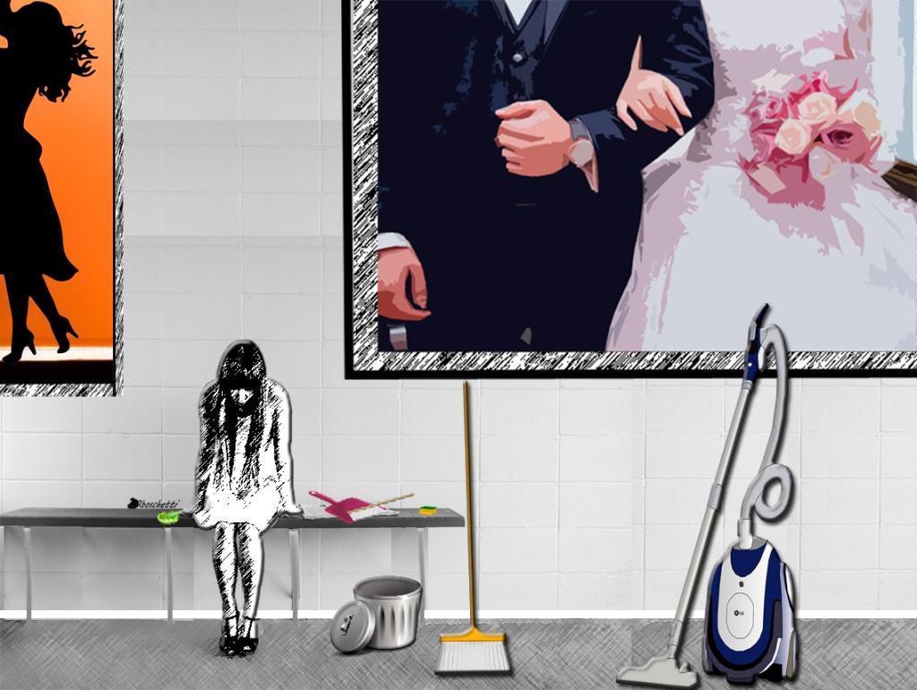 Limpia y ordena la casa temerosa de hacerlo mal. Entonces, él le reprocha haberse convertido en una carga. Le recuerda que él sacrificó sus días y noches de trabajo en lugares que no deseó. No la abandona, pero se busca a otra con más aspiraciones.