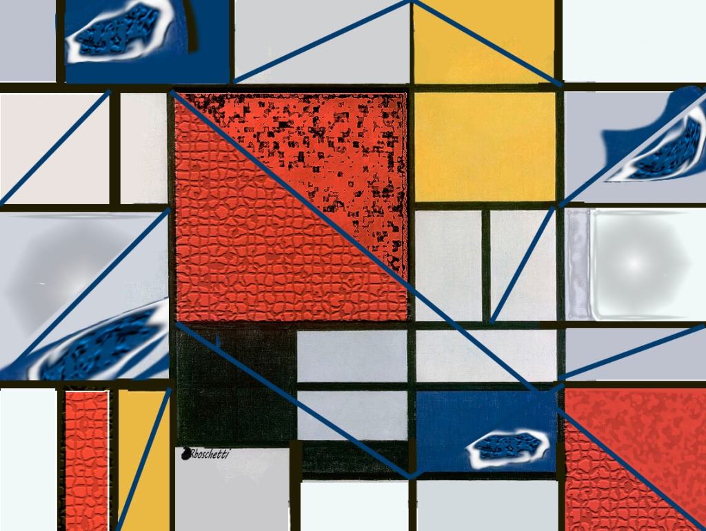 Este microrrelato está dedicado a mi hija Valentina a quien desde siempre le ha hecho gracia la postura de Mondrian (aunque la comparte) y también a todas aquellas personas a las que tampoco les gustan las líneas inclinadas. En A propósito de: constructivismo, Bauhaus y el estilo industrial, comento sobre las líneas y la ruptura de Mondrian con el grupo De Stijl (El estilo)