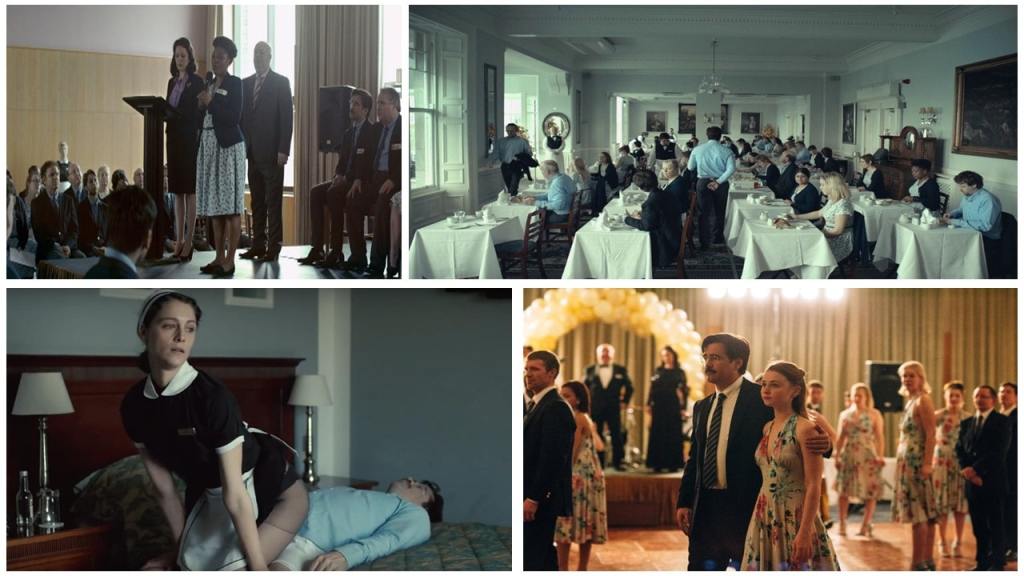 Los detalles de la ambientación están cuidados al máximo, dentro de una estética limpia y muy explícita. El hotel: inmobiliario, disposición, protocolo y organización del tiempo de los usuarios/reclusos recuerdan a las actividades corporativas o grupos de turistas, muy bien podían estar en una convención, encuentro, planes vacaciones… en fin están allí con un propósito y por lo tanto hay actividades acordes a dicho fin, por ejemplo hay un baile, normas sobre las actividades sexuales en solitario, por pareja y para estimular el deseo… imágenes que resumen muy bien el ambiente rígido y totalitario que se respira no solo dentro de estas instalaciones sino en la mentalidad que sobrevuela a los personajes. Todo es un recordatorio de algo que tienen muy internalizado.