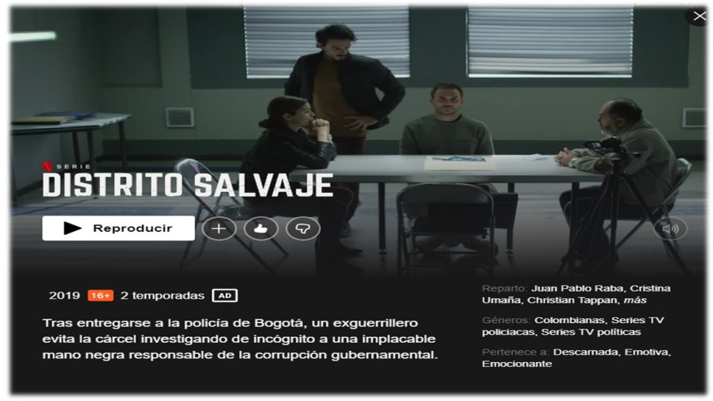 Distrito salvaje (serie, 2018) es otra de esas joyas que esconde Netflix y se encuentran luego de mucho navegar buscando «similares». Se presenta como un thriller, uno más sobre soldados que buscan reinsertarse a la vida civil, pero con las peculiaridades de la realidad latinoamericana. Le bastan dos temporadas, de diez episodios cada una, para mostrar desde la ficción un poco de contexto sobre la historia contemporánea de un país y sus vecinos/socios. Afortunadamente está bastante lejos de ser una narco serie y más cerca de la Saga Bourne o de Homeland.