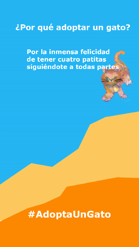 Por estas razones y muchas otras que serían muy largas de contar, en nuestra campaña de #AdoptaUnGato decidimos usar esta frase «¿Por qué adoptar un gato? Por la inmensa felicidad de tener cuatro patitas siguiéndote a todas partes».