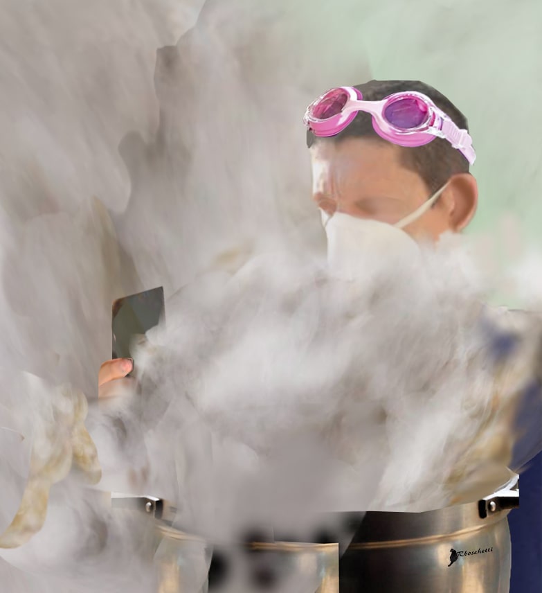 Así que, sin quitarme la mascarilla, coloco las gafas para nadar (que uso como protección para los ojos) sobre la cabeza y la acerco a la olla. Los gases que emanan crean una atmósfera interesante, audaz. Me dan una idea para postear con la leyenda: «Un alma steampunk con bolsillo de rookeries», cuando las empresas lo vean dirán: