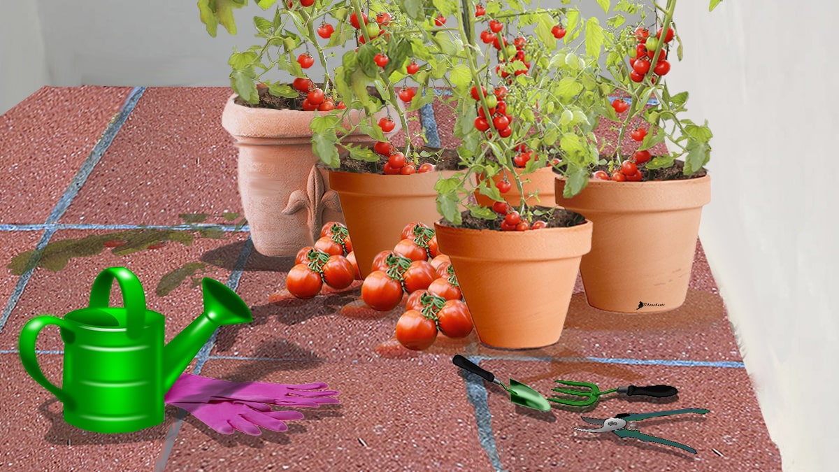 Después, sus manos comprueban el tamaño, peso, color de los tomates. Mi mente también vuela al futuro. Visualizo los posibles fondos para los videos y fotos que voy a postear, con la leyenda: El tomate más grande que he visto en la vida, creció en mi huerto ^^