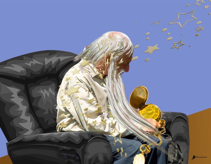 Una voz extraña lo despertó. Se vio a sí mismo con las manos aferradas a un viejo reloj que consideraba su tesoro. Sentado en su sillón no supo cuánto tiempo había pasado desde que sus ojos juguetones se habían cerrado. Ni cuándo fue poseído por el silencio, envuelto en su manta de estrellas.